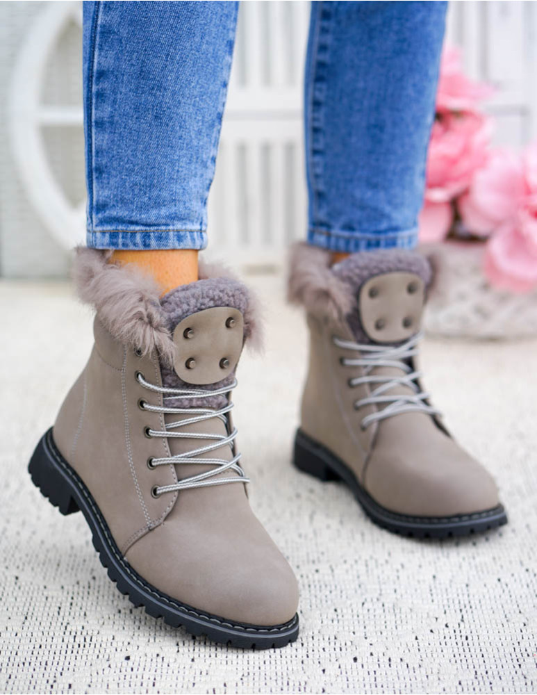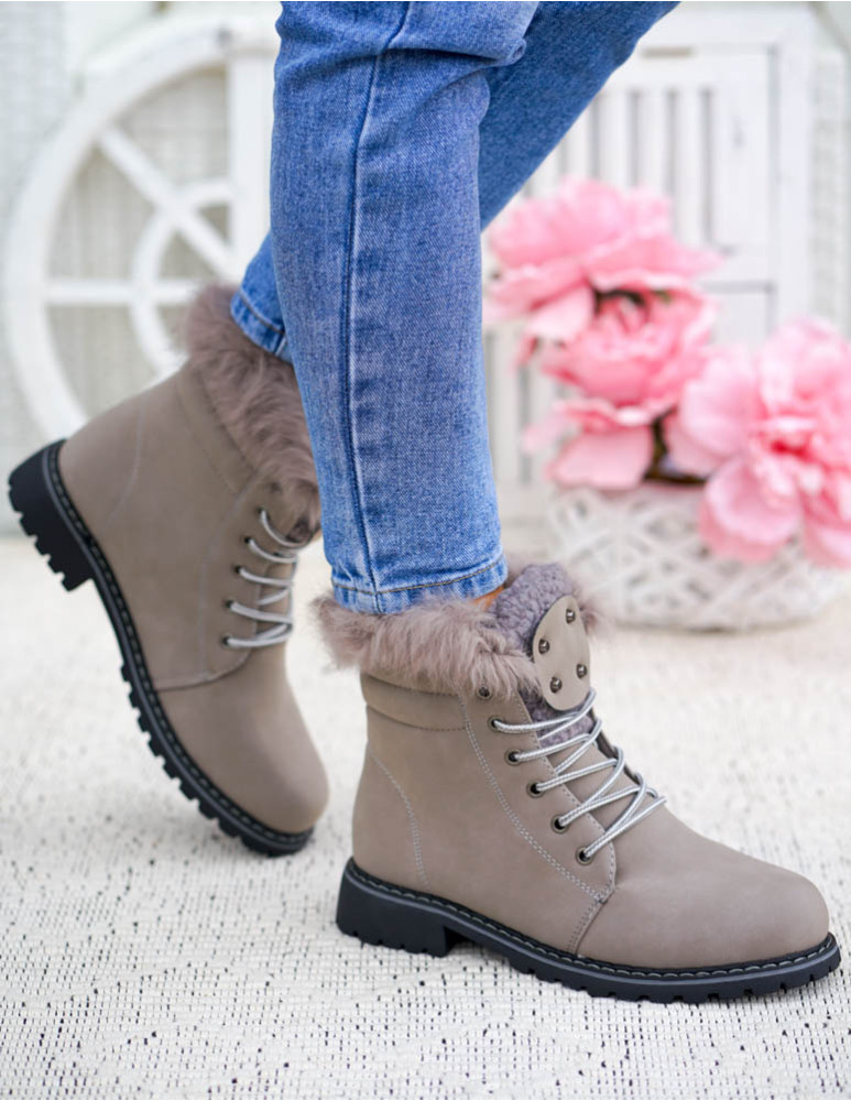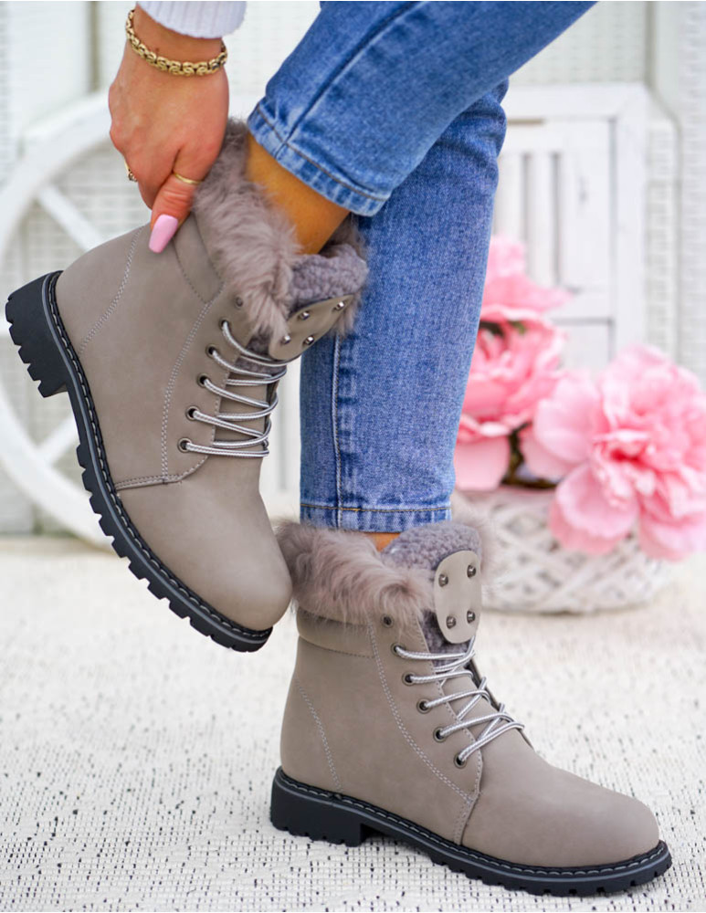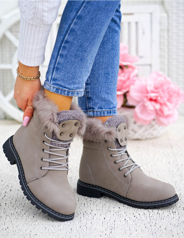 ❤ Buty wyściełane są grubym, miłym, szarym futerkiem