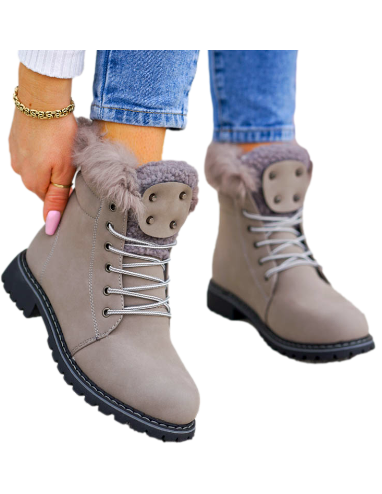 • Kod produktu: Szare Buty Zimowe Trapery Ocieplane Botki Śniegowce Diaz