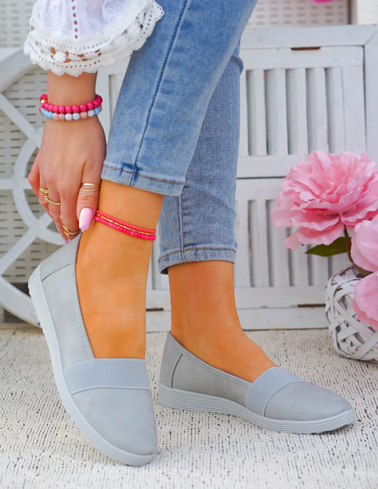 Szare Espadryle Na Niskim Koturnie Z Gumką