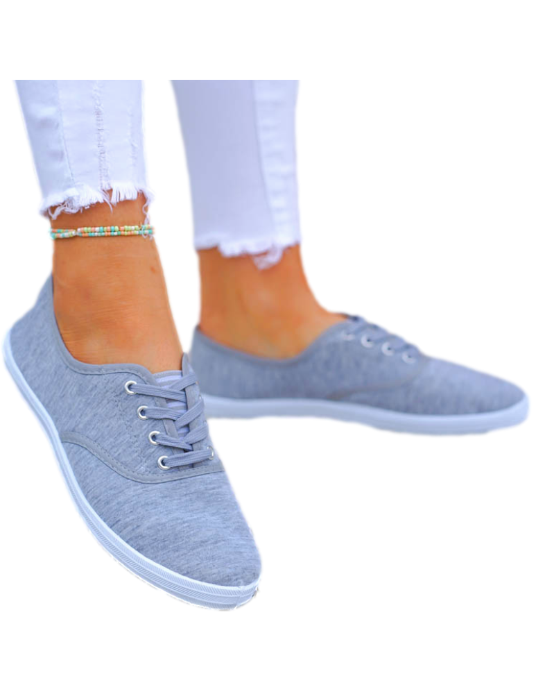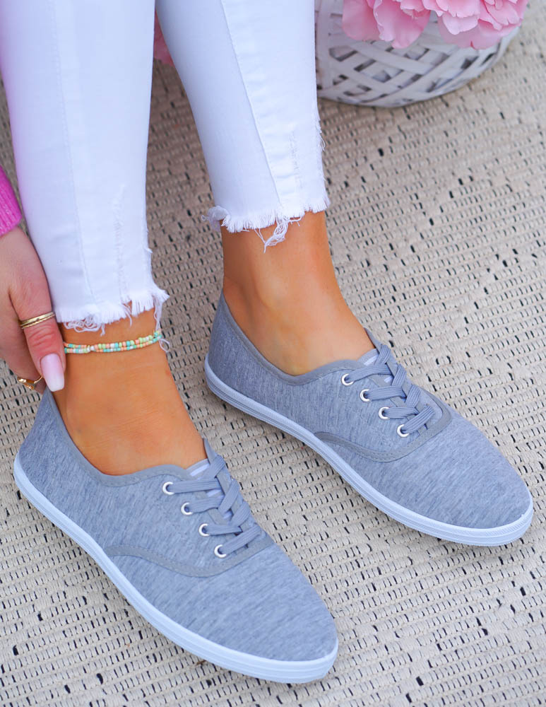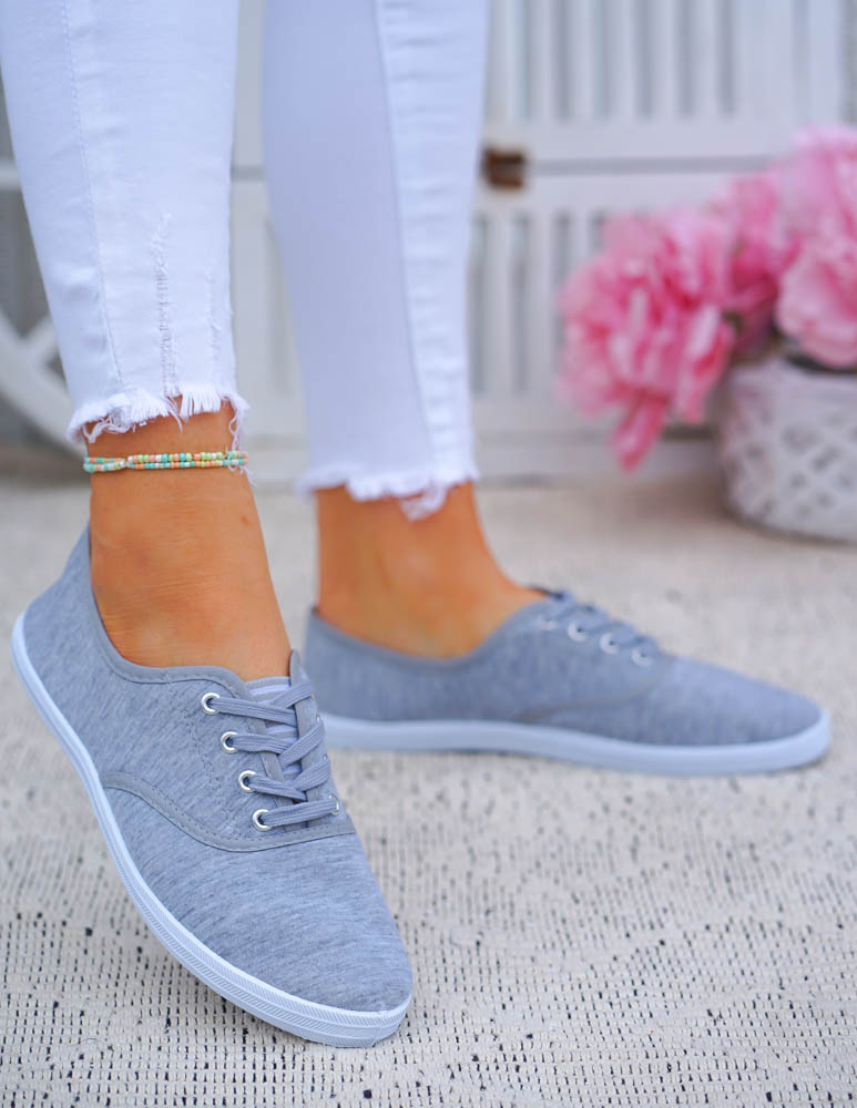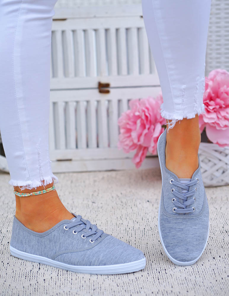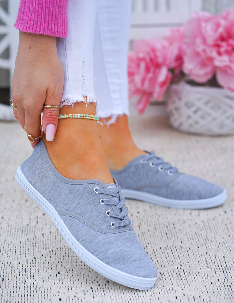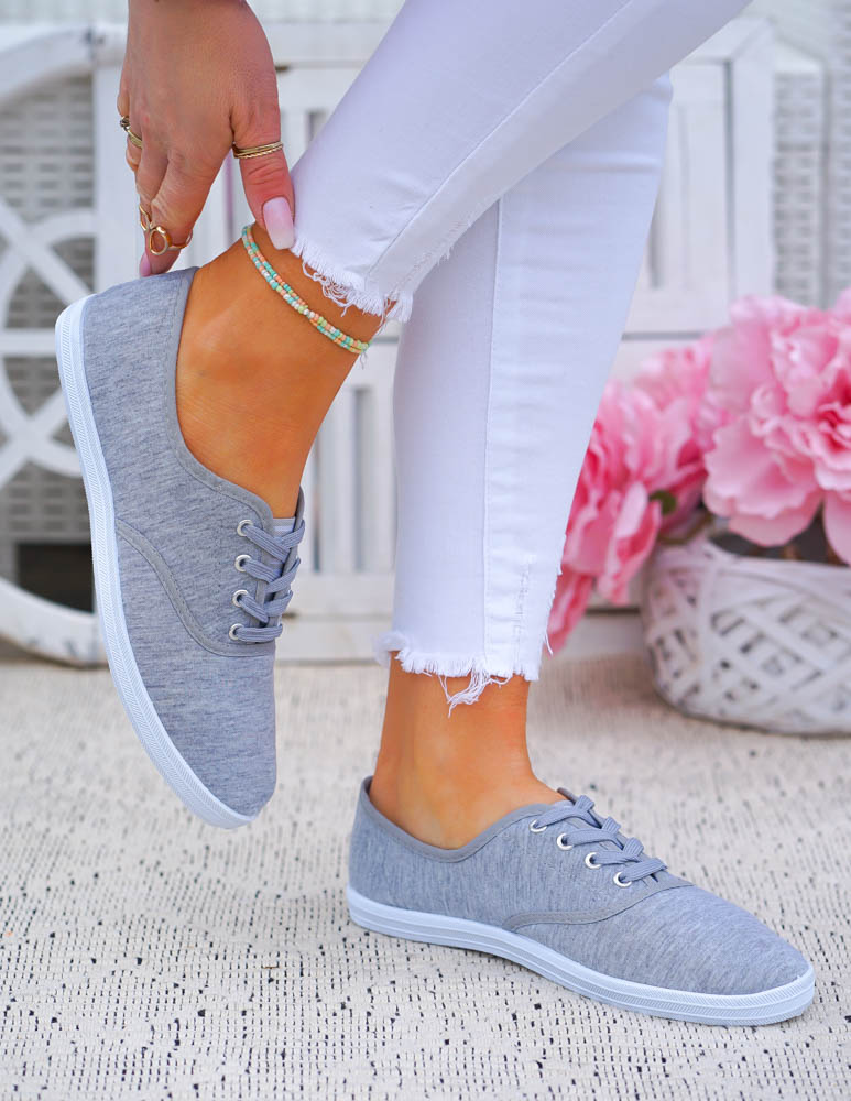 Szare Klasyczne Sznurowane Tenisówki Damskie Ada
