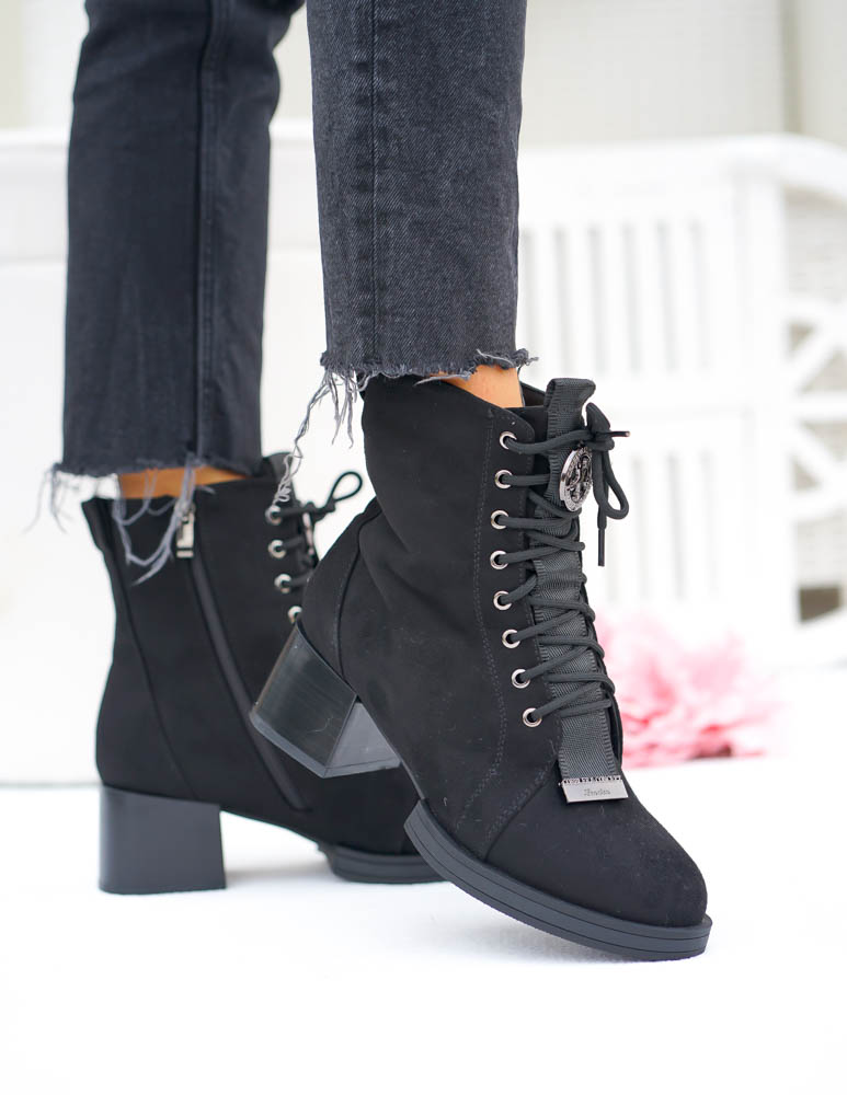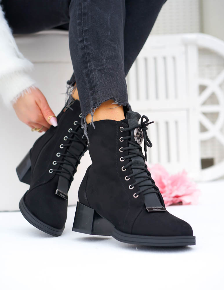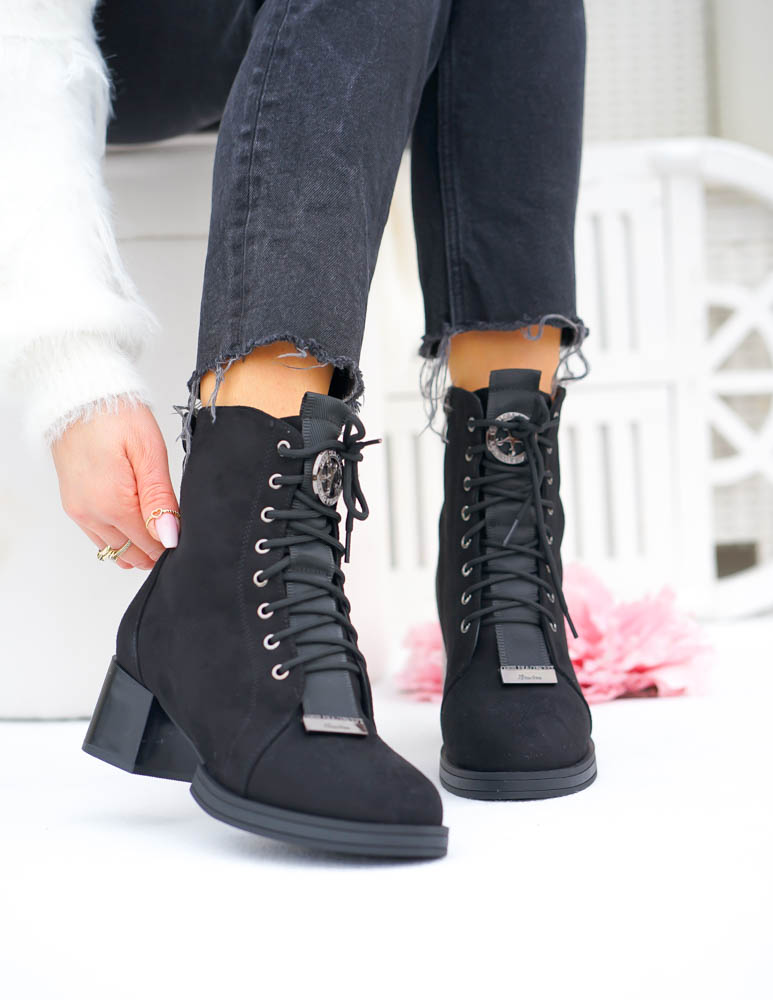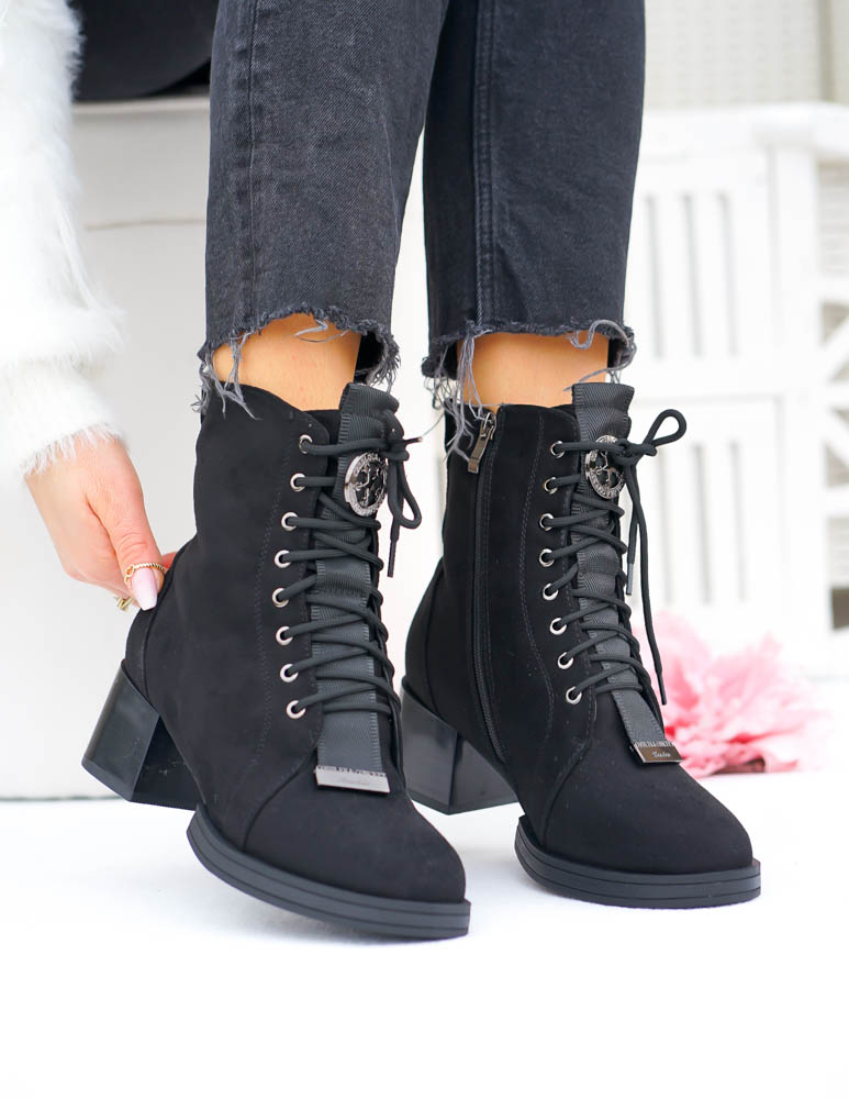 Czarne Klasyczne Zamszowe Botki Na Obcasie Fenny