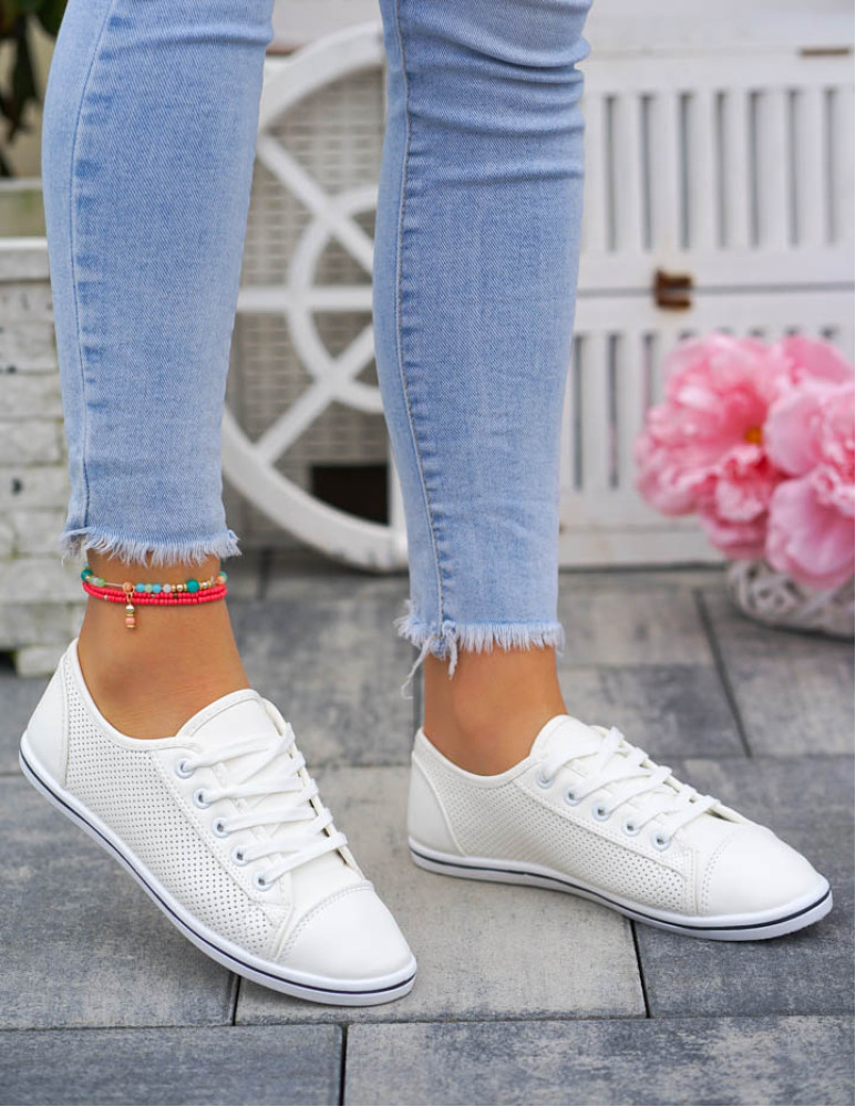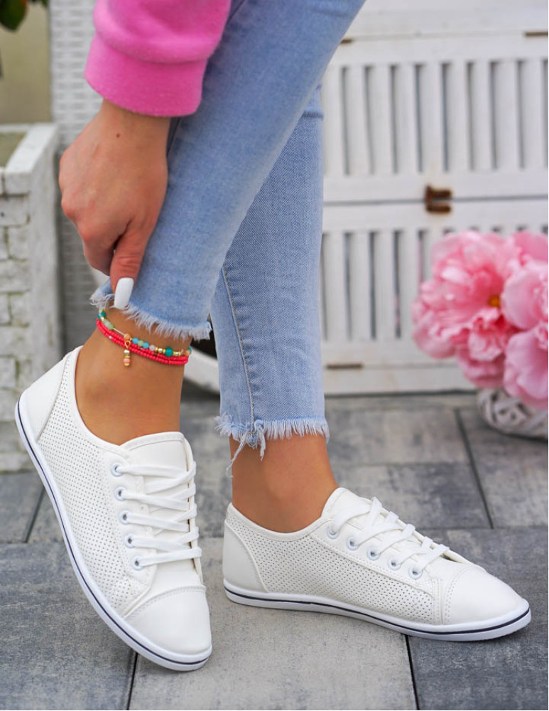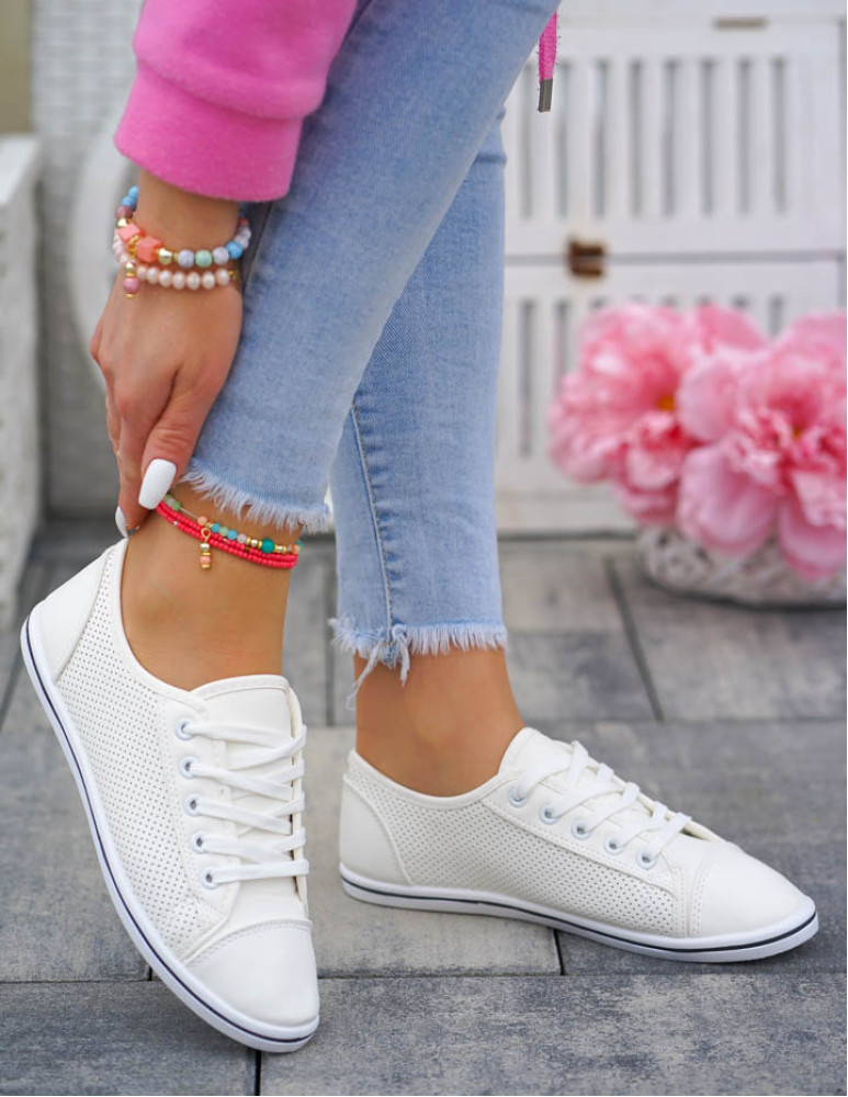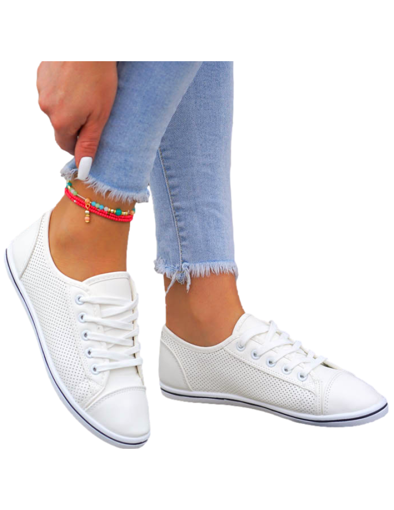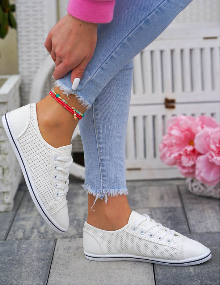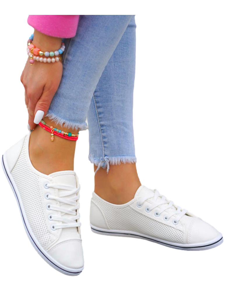 Białe Ażurowe Trampki Tenisówki Buty Sportowe Skóra Nice