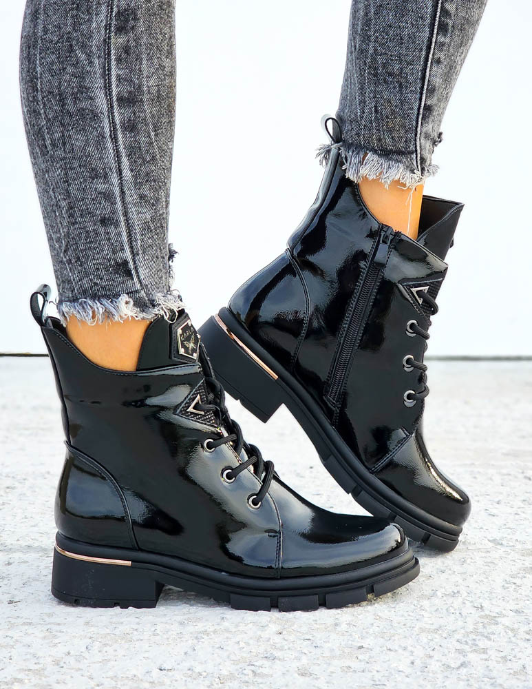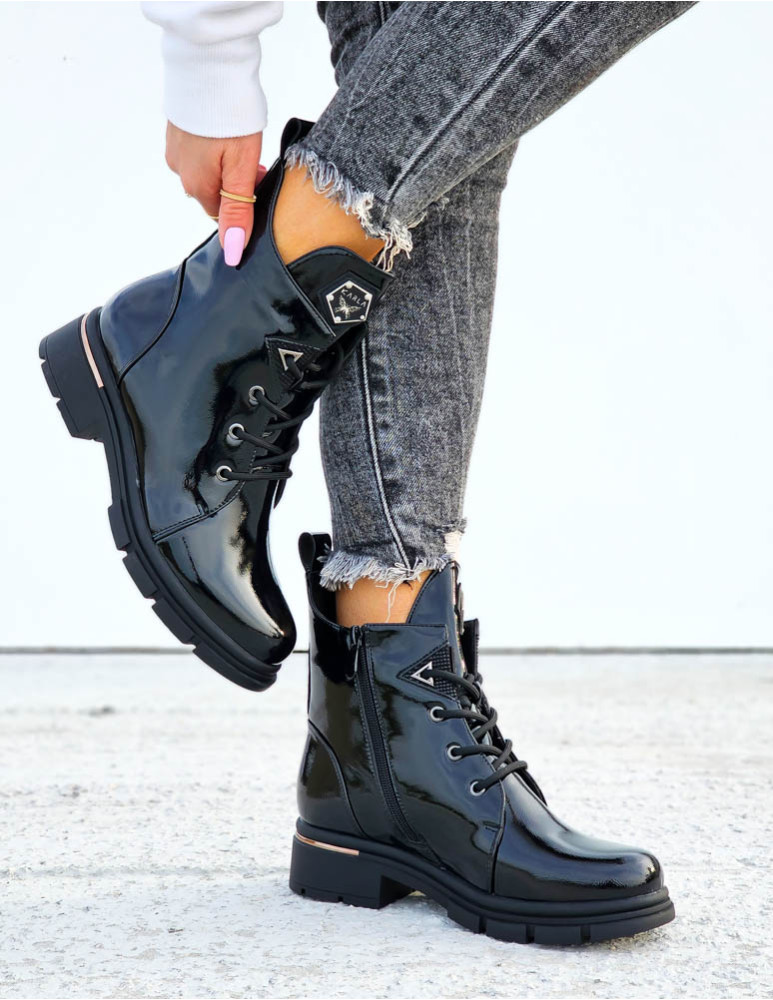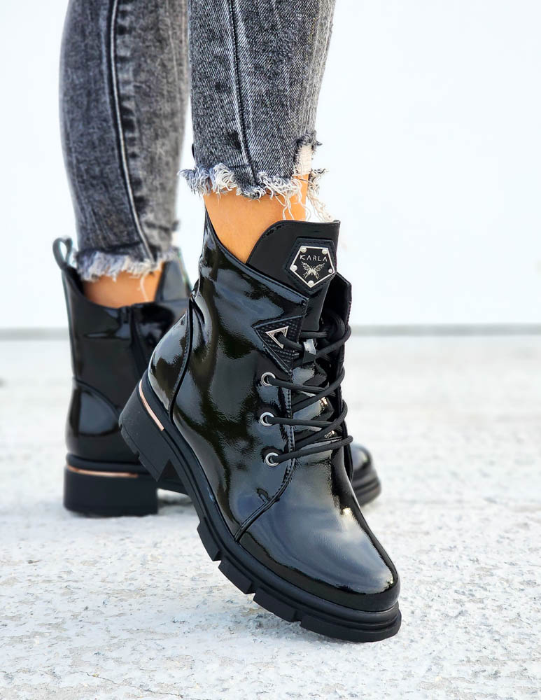 Workery Damskie Botki Ze Skóry Lakierowanej Karla