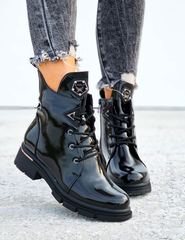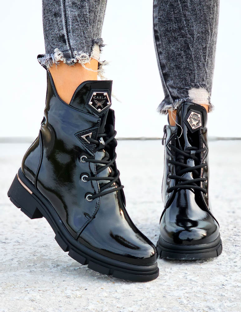 - Kod produktu: Workery Damskie Botki Ze Skóry Lakierowanej Karla
