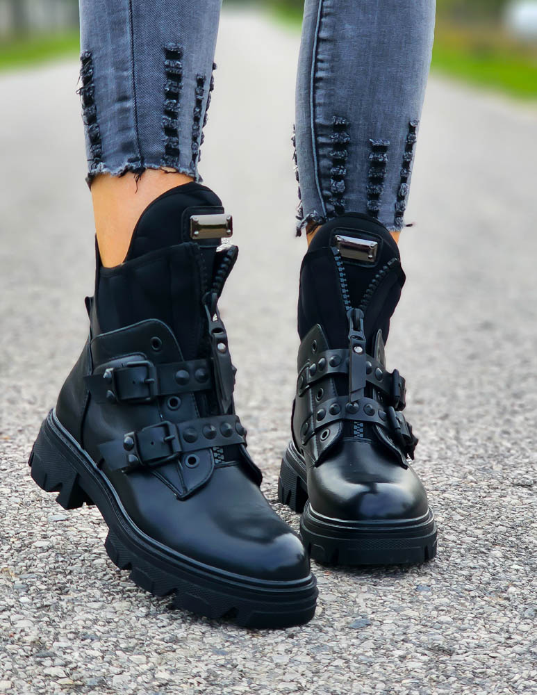 Czarne Botki Workery Glany Damskie Favritto