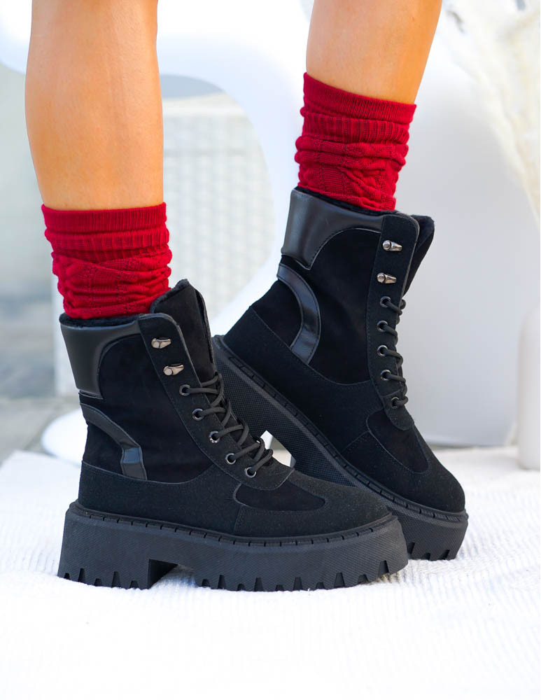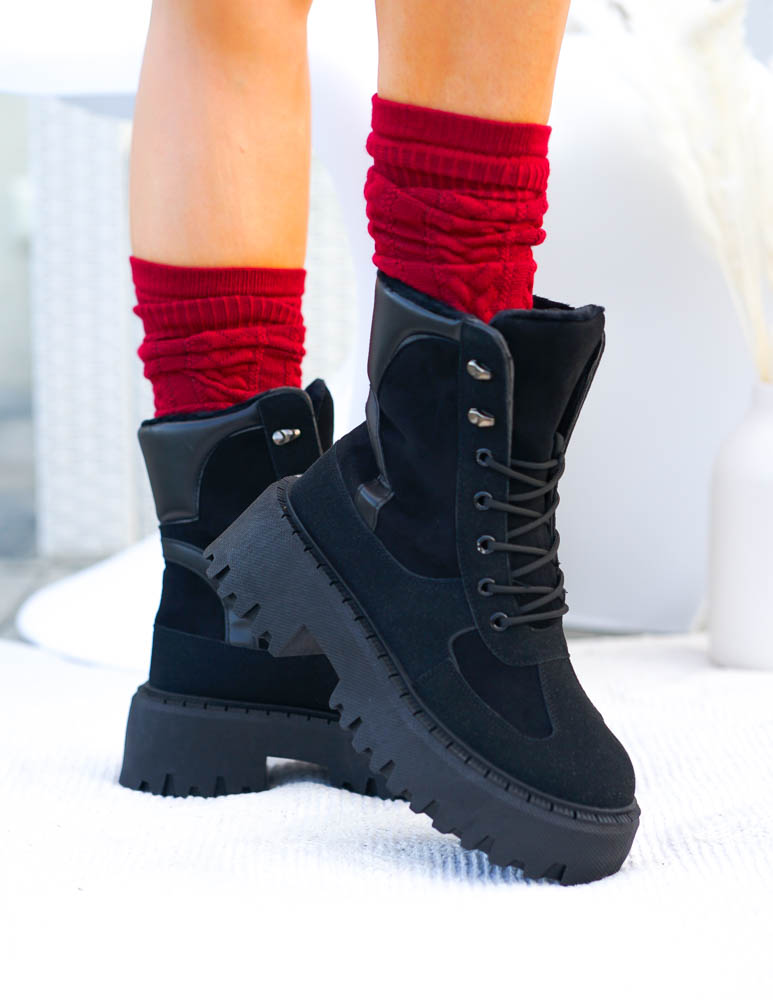 ❤NAJNOWSZA KOLEKCJA !!!❤EFEKTOWNE CZARNE BOTKI NA GRUBEJ PODESZWIE❤BUTY PPOSIADAJĄ GUMOWE WSTAWKI PO..