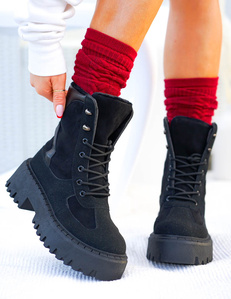 Krótkie Czarne Zamszowe Botki Na Koturnie Save
