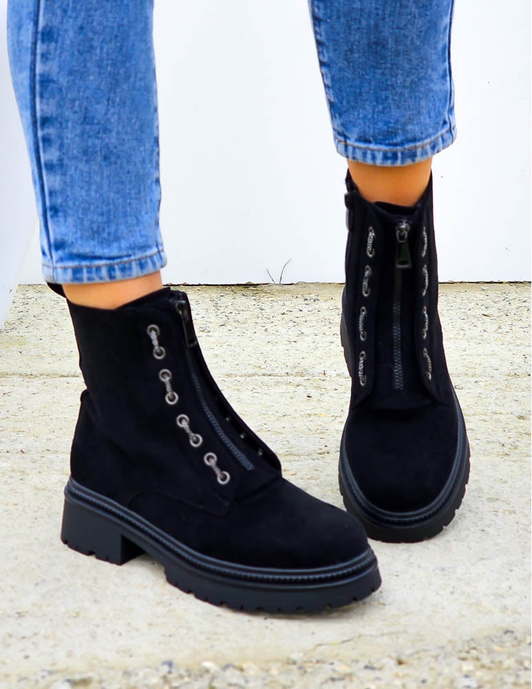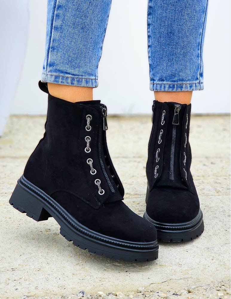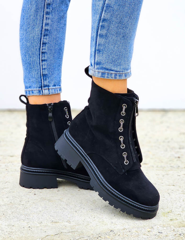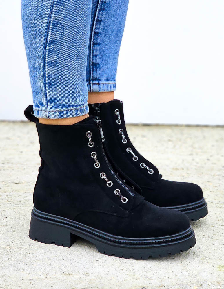 Zamszowe Botki Workery Na Grubej Podeszwie Zips