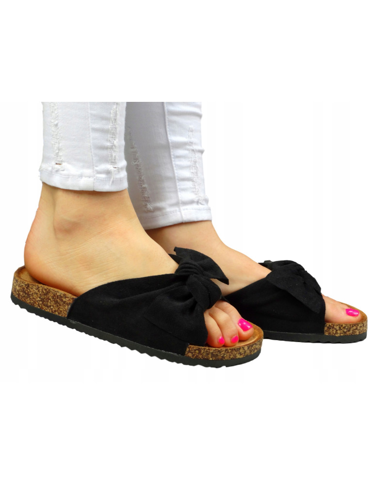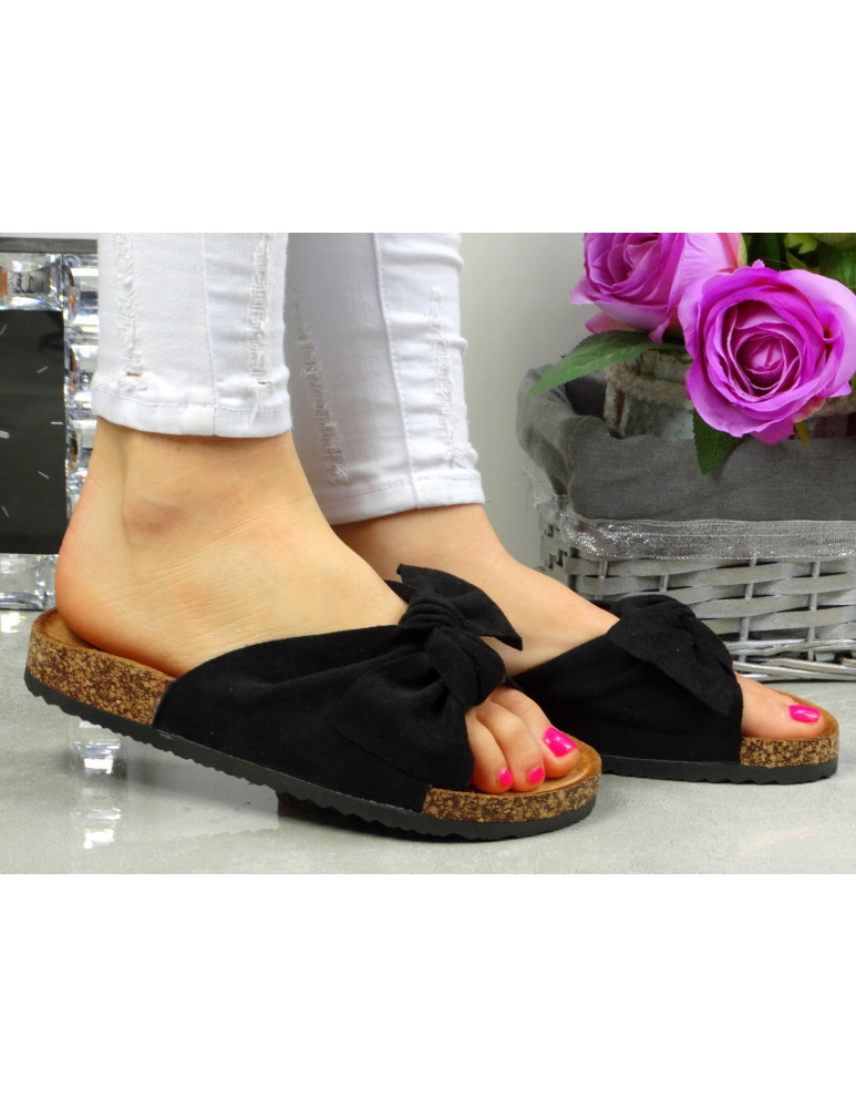 - Kod produktu: Zamszowe Klapki Na Korku Z Kokardą