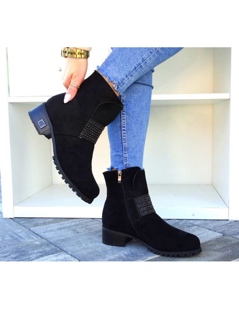 Czarne klasyczne botki damskie, Ocieplone, grubym, miłym futerkiemButy zapinane są na suwakgrub..