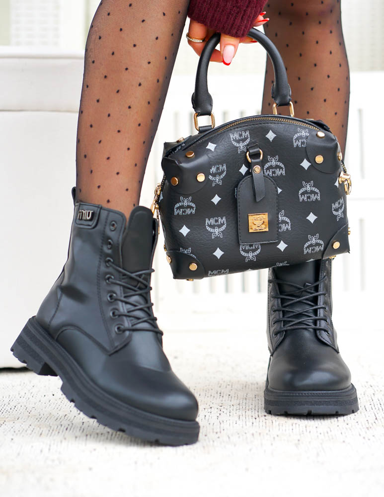 Czarne Botki Workery Glany Damskie Favritto