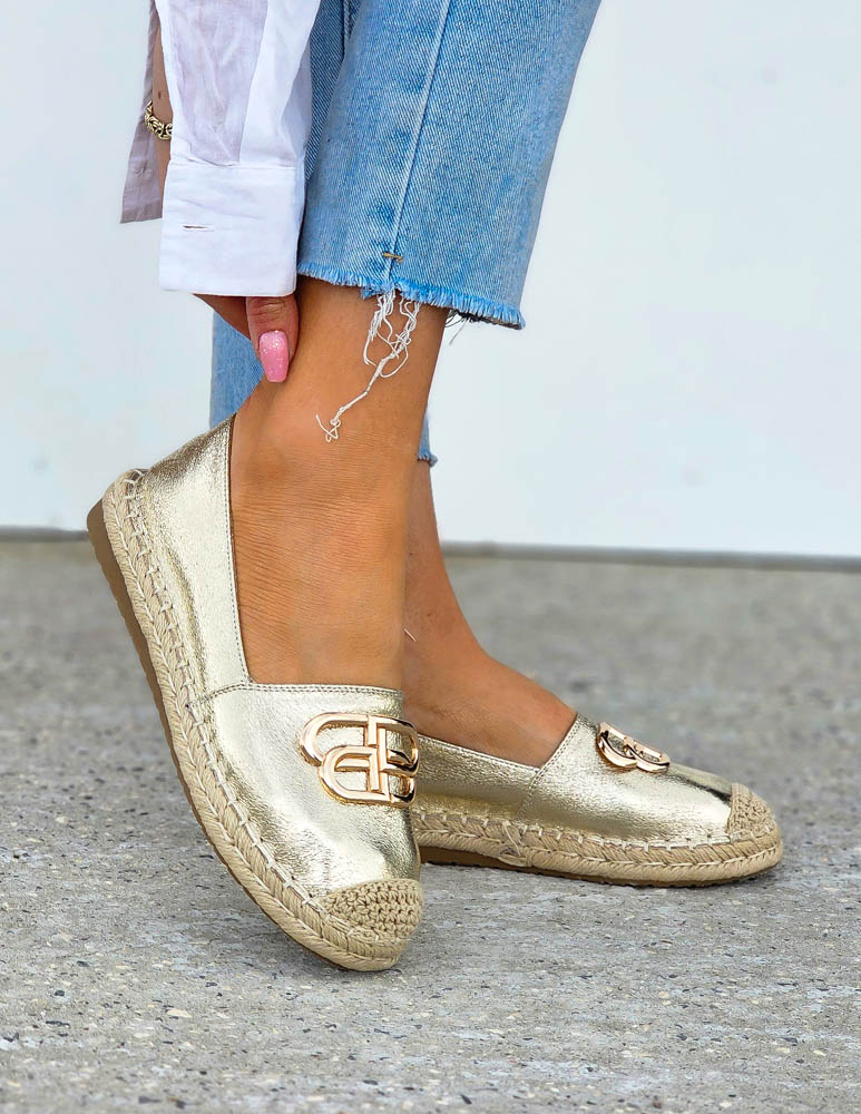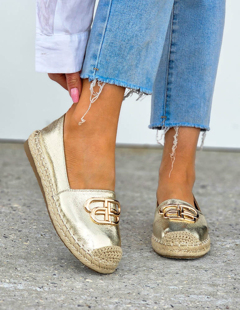 Złote Espadryle Na Plecionej Podeszwie Sawes