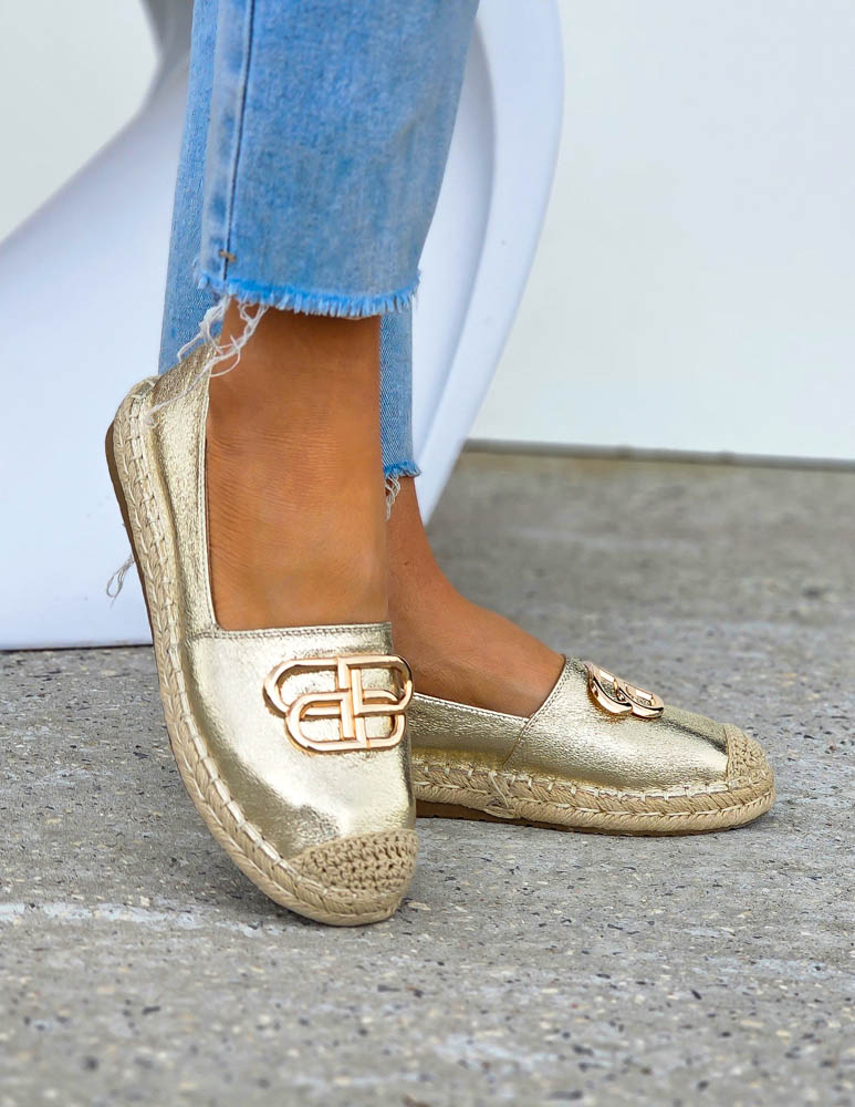 ❤ Efektowne, złote espadryle w stylu boho na plecionej podeszwie