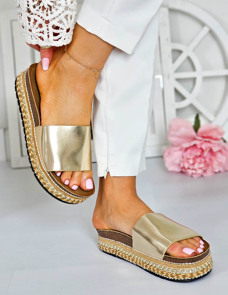 Złote Klapki Damskie Na Platformie SunSet